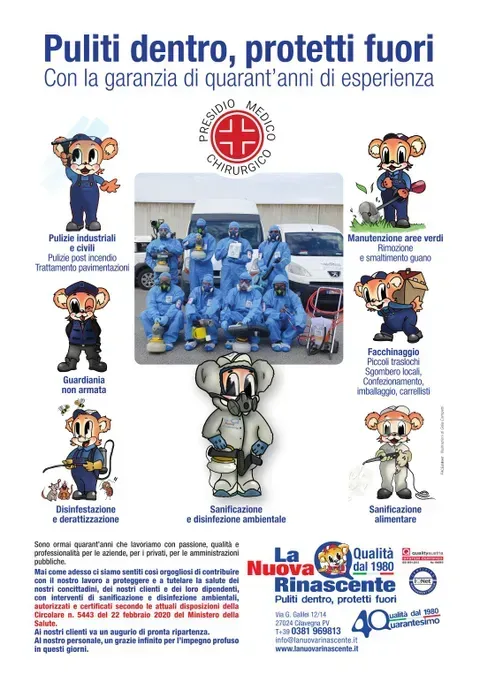 Da quarant'anni La Nuova Rinascente si occupa di fornire servizi di disinfezione e di sanificazione per aziende e privati.
